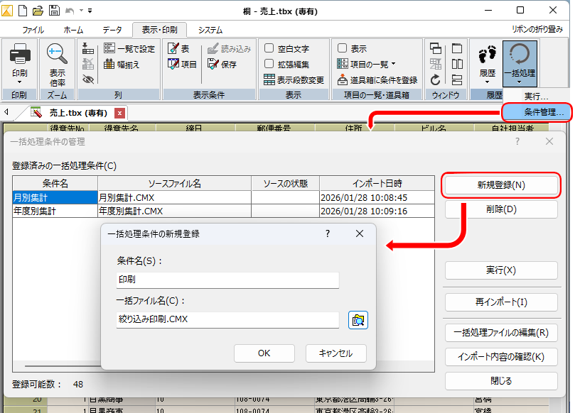 一括処理・履歴を表に処理条件として登録して、表単体で処理の自動化ができるようにしました。