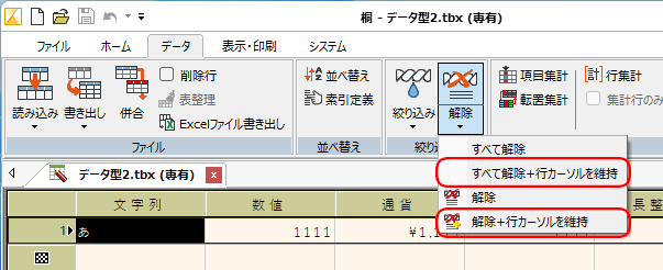 そこで今回、解除・全解除に行カーソル位置を維持する機能を追加し、より自然にデータ操作を行えるようにしました。